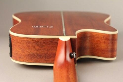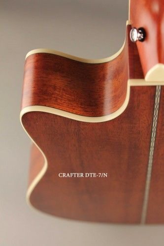 Верхняя дека CRAFTER DTE 7/N выполнена из массива красного кедра (Red Cedar), что дает гитаре глубокий и мощный звук с большой тональной гибкостью. Уникальное отличие этой древесины в том, что гитара сразу имеет более зрелый звук, чем с декой из аналогичной по возрасту ели. Внешне красный кедр имеет благородную текстуру древесины и затемненный цвет, что хорошо подчеркнуто матовым лаком, которым покрыт корпус.