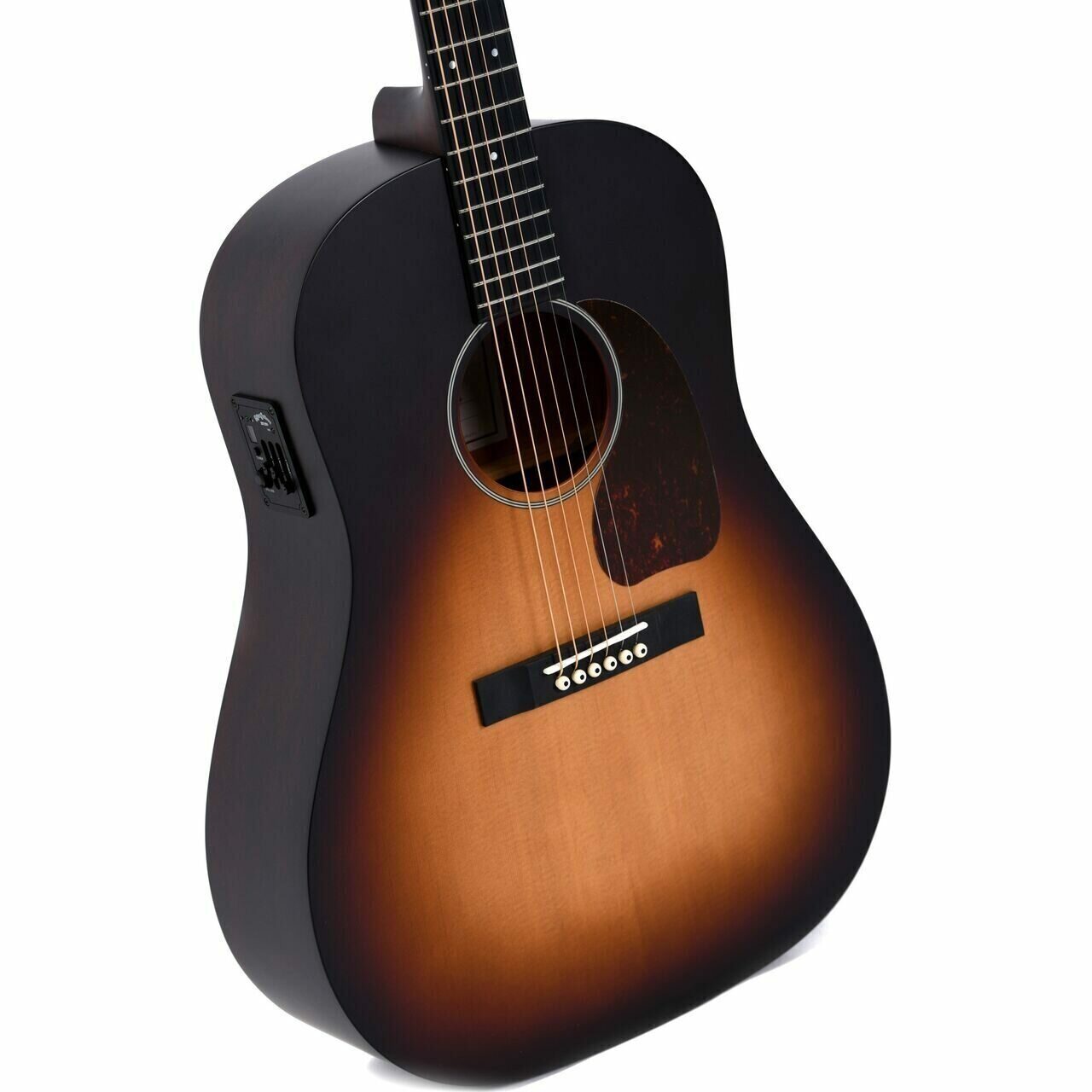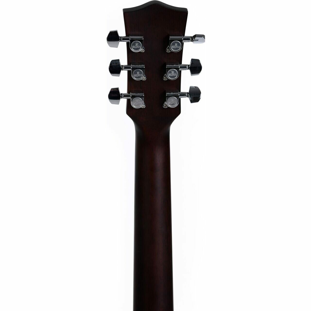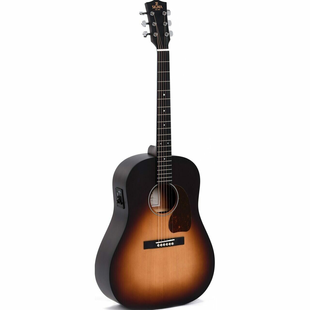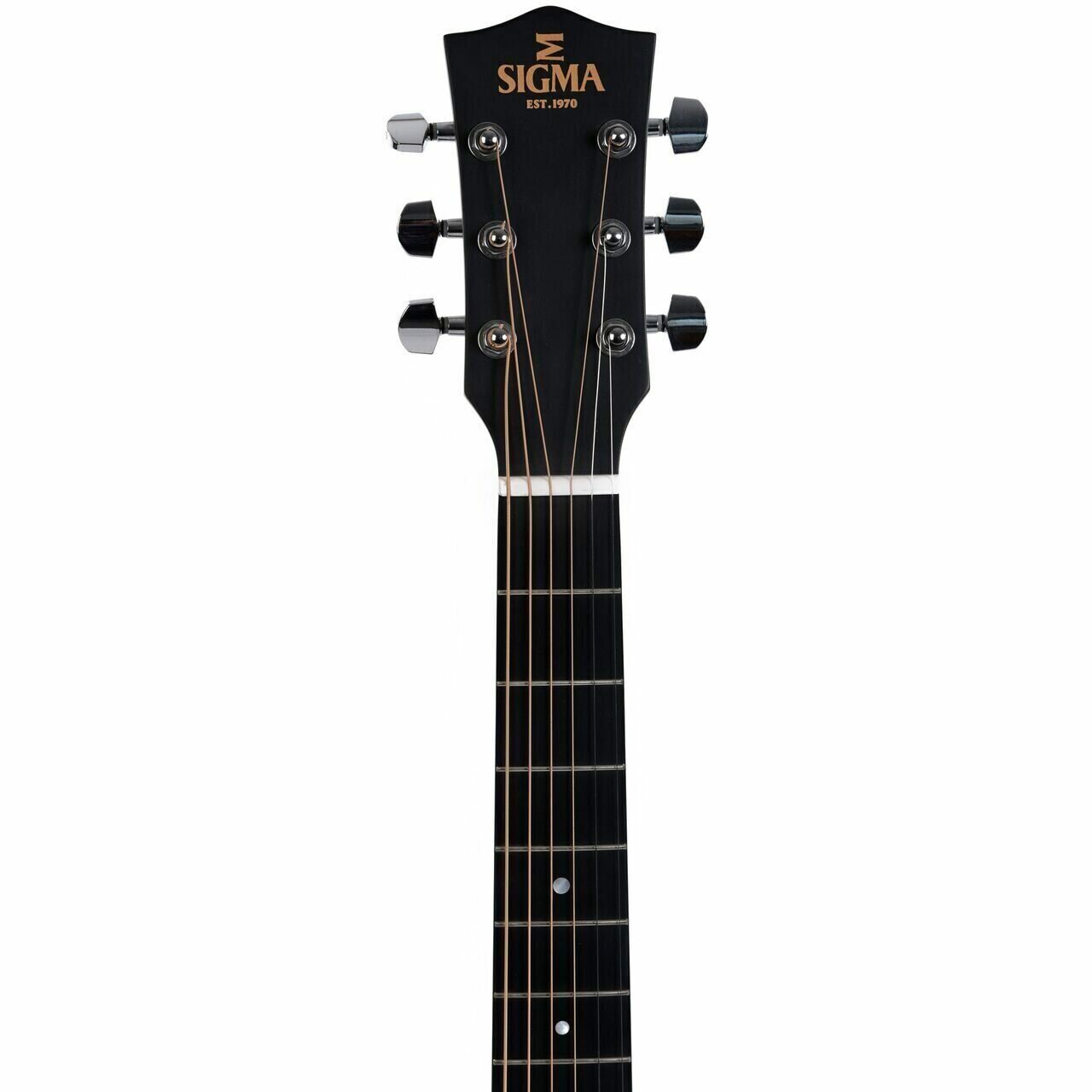 Электроакустическая гитара Sigma JM-SGE покрыта глянцевым лаком, имеет классическую белую окантовку и стильный цвет Sun Burst.