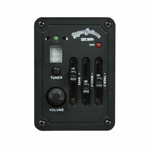 Установленный активный звукосниматель Sigma Preamp с регуляторами эквалайзера и громкости включает хроматический тюнер, который обеспечивают необходимые функции для игры через усилитель, преамп или директ-бокс без вспомогательных устройств формирования звука.