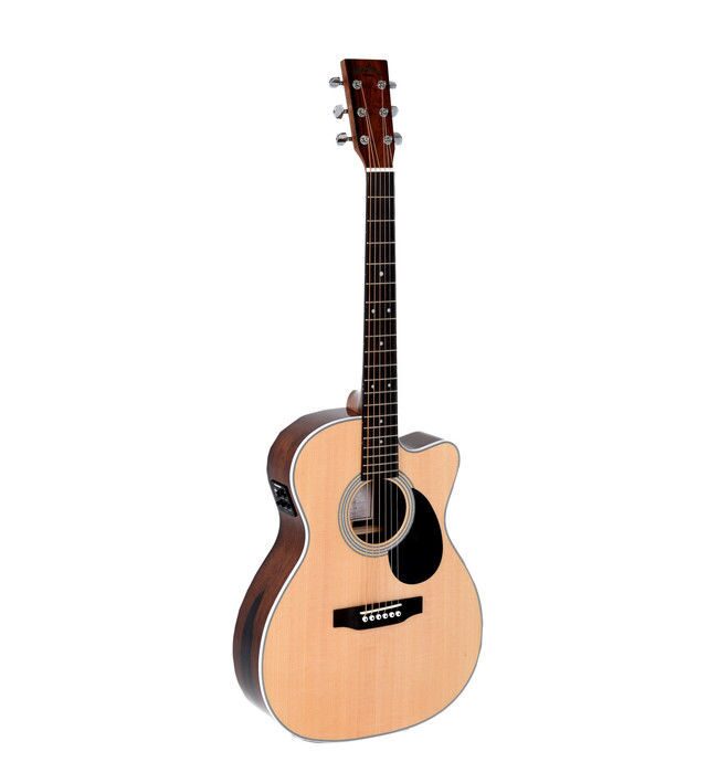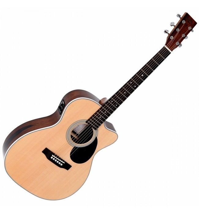 Sigma OMMRC-1STE - это электроакустическая гитара c 6 струнами, мензура 645 мм, тип корпуса: 000-14 Fret, Cutaway, верхняя дека: твердый ель, задняя дека и обечайки: мадагаскарское розовое дерево, гриф: красное дерево.