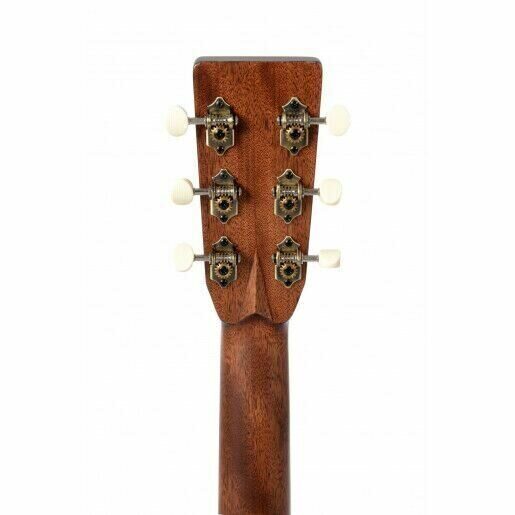 Эта неокрашенная гитара с матовым покрытием имеет гриф из махагони с накладкой из композитного материала микарта, который отличается невероятной прочностью, стабильным поведением в различных условиях, устойчивостью к попаданию воды и повышенной влажности воздуха. Корпус целиком выполнен из массива махагони - древесины, предоставляющей ровное, мягкое, сбалансированное и четкое звучание, когда каждая нота, особенно на высоких частотах, отлично прослушивается. Эстетическая привлекательность инструмента подчеркивается оригинальным дизайном из перламутра в виде инкрустации ладов и декора струнодержателя.