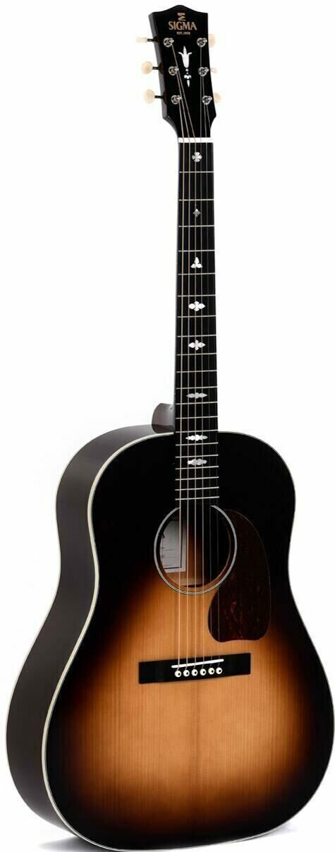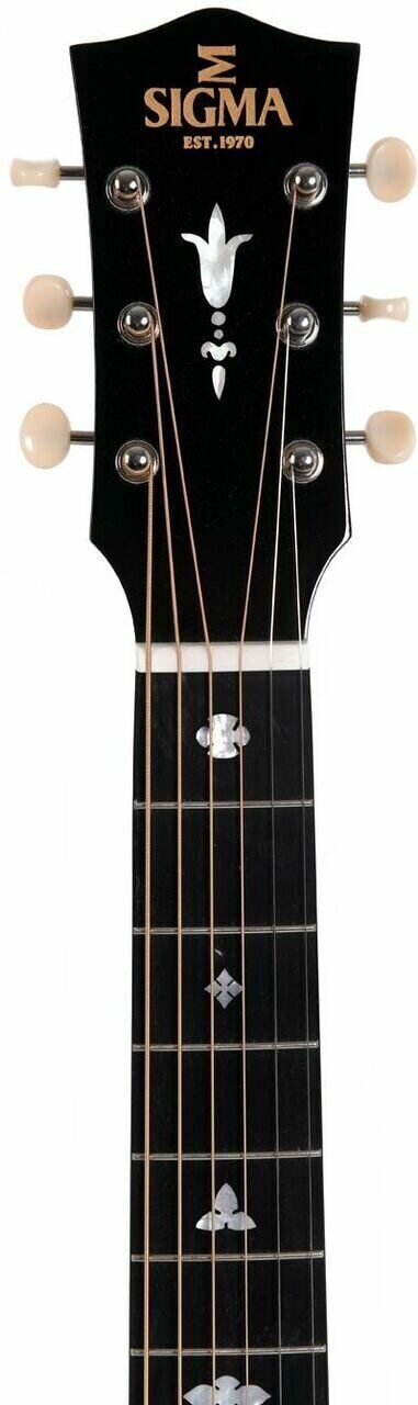 Sigma SJM-SG45 - электроакустическая гитара, сочетающая в себе стильный внешний вид дредноут корпуса и встроенную Fishman электронику, которые в совокупности обеспечивают выступающих гитаристов готовым к сцене инструментом. Благодаря цельному топу из массива сихтинской ели и массиву махагона нижней деке и обечайки, она производит универсальный звук, отзывчивый и безупречно подходящий к многочисленным игровым стилям, а также способна соответствовать практически всем жанрам музыки. Тон этой гитары богатый, насыщенный и резонансный с четкой артикуляцией и широким динамическим диапазоном. Для еще более отличительного характера звучания, на нее установлены из натуральной кости порожки, предоставляющие дополнительный резонанс и сустейн, а также позволяющие гитаре дольше держать строй для возможности более продолжительного исполнения без подстройки.