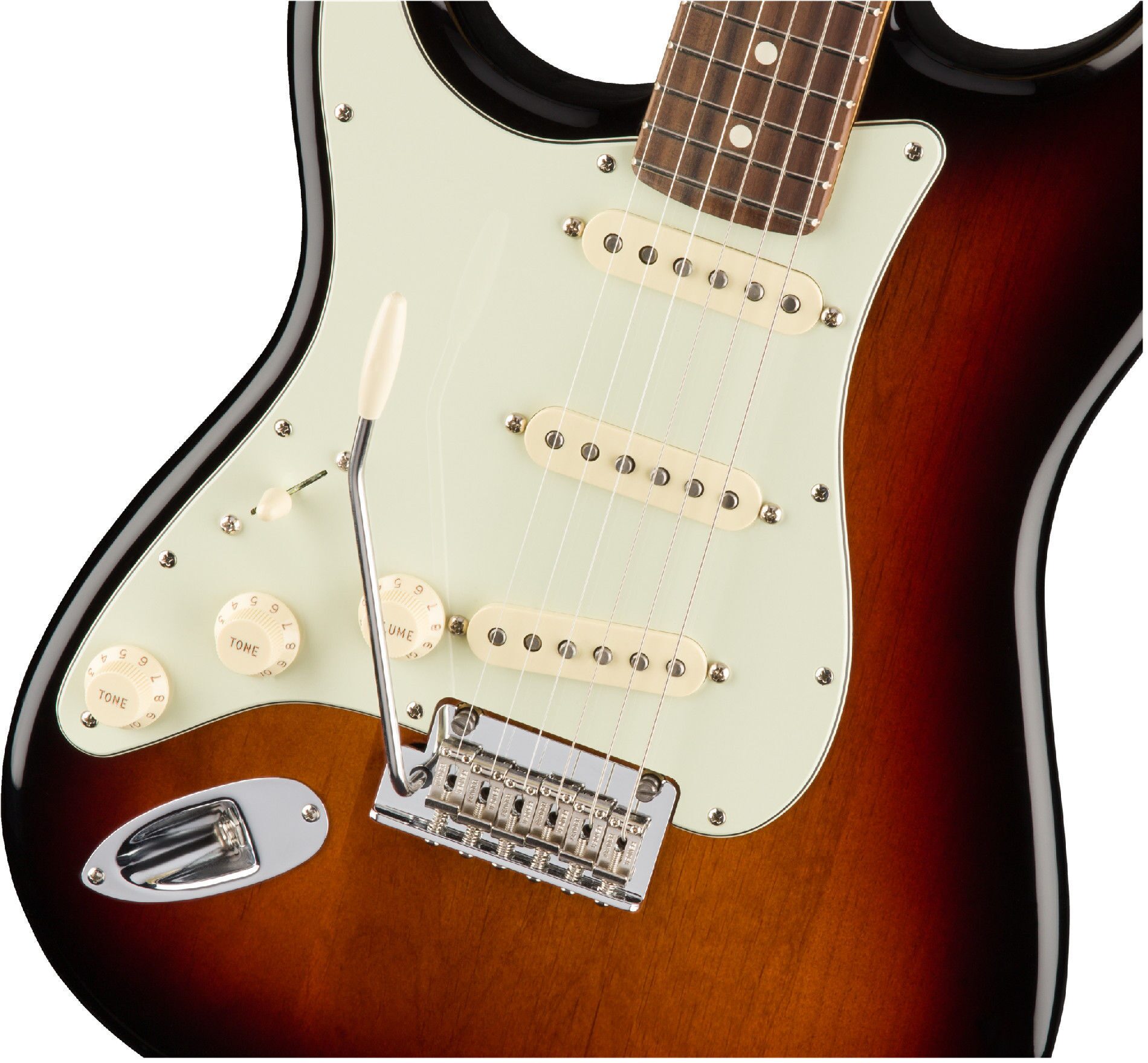 Новые звукосниматели V-Mod, разработанные легендарным мастером Тимом Шоу, специально сконфигурированы каждый для своей позиции. В них используются алнико-магниты различных типов, что позволяет лучше передавать нюансы звучания каждой струны, сохраняя при этом узнаваемое звучание Fender. Благодаря новому тонкомпенсирующему контуру, при работе ручкой громкости звук гитары всегда остается чистым и прозрачным. Новый профиль грифа Modern „Deep C“ удобно ложится в руку, а узкие высокие лады (narrow-tall) облегчают подтяжку струны и улучшают интонирование при исполнении аккордов.