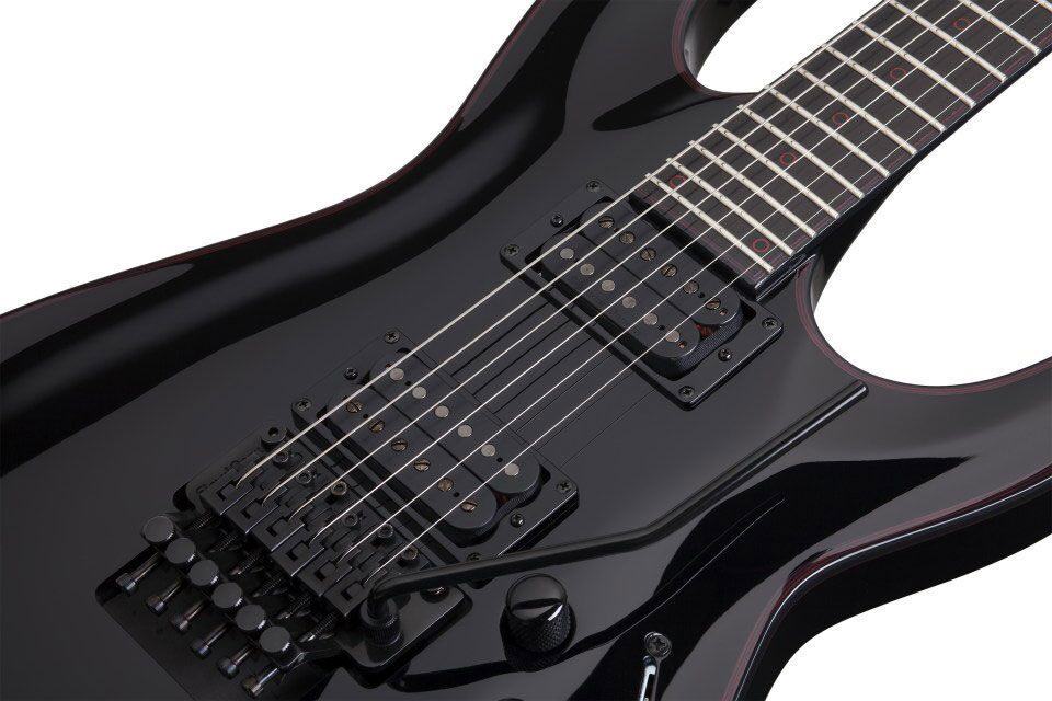 Шестиструнная электрогитара, корпус: махагони, гриф: клен/палисандр(вклеенный), 2 звукоснимателя Seymour Duncan active black outs, Original Floyd Rose Tremolo, колки: Grover, мензура: 25,5", 24X-J лада, Цвет/фурнитура: чёрный(BLK)/черный хром
