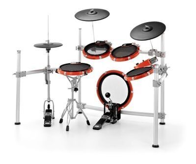 - Компоненты электронной ударной установки: 14" пэд бас барабана, 12" пэд рабочего барабана, 3x 10" пэды томов, 2x 14" пэды тарелок, 12" пэд хай-хэта, звуковой модуль, прочная алюминиевая рама.