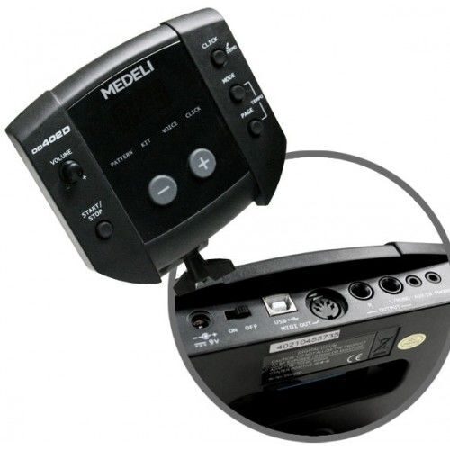 Основой для этой модели служит звуковой модуль от установки Medeli DD501, но в немного урезанном варианте. По звучанию, количеству и качеству тембров они совершенно идентичны. Отличие заключается в отстутсвии возможности сохранения собственных наборов ударных установок. Зато как и в Medeli DD501 в наличии этой установки имеется порт USB для подключения к компьютеру, что позволит Вам использовать любые сэмплы ударных, которые Вы сами пожелаете.