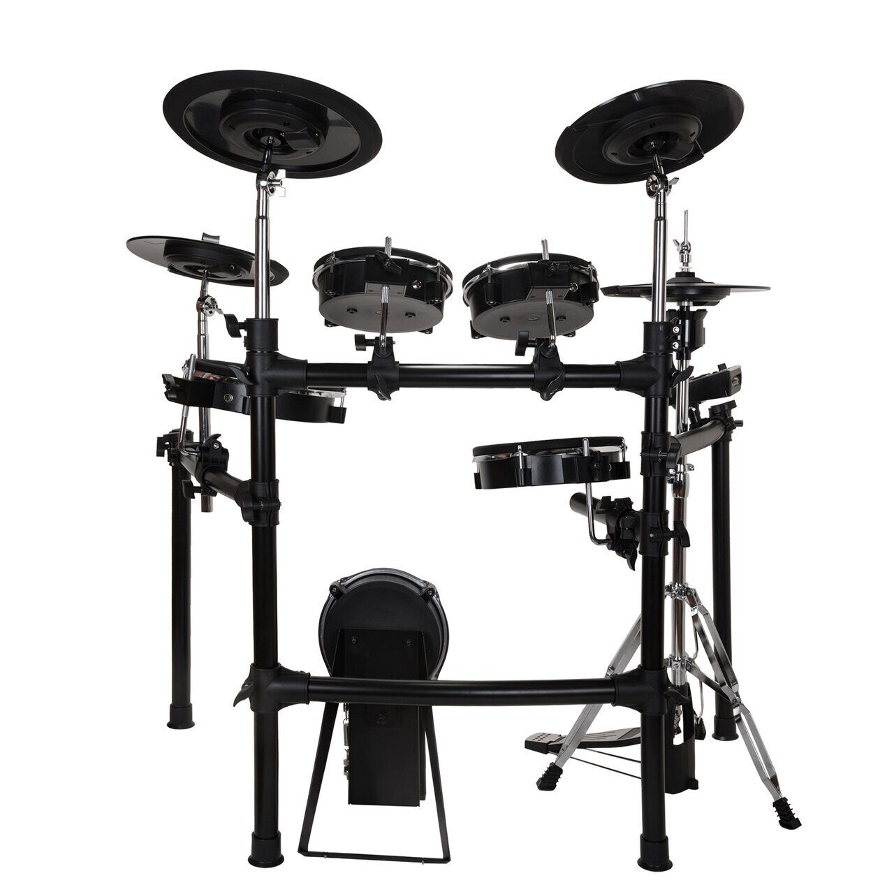 Самое существенное различие между Rockdale SD201-3SH и его младшими собратьями – это то, что Rockdale SD201-3SH имеет полноценную стойку хай-хета и сетчатый пэд бас-барабана. А также то, что все пэды томов и малого барабана являются двухзонными. Именно это делает Rockdale SD201-3SH электронной ударной установкой, на 100% имитирующей игру на акустических ударных.
