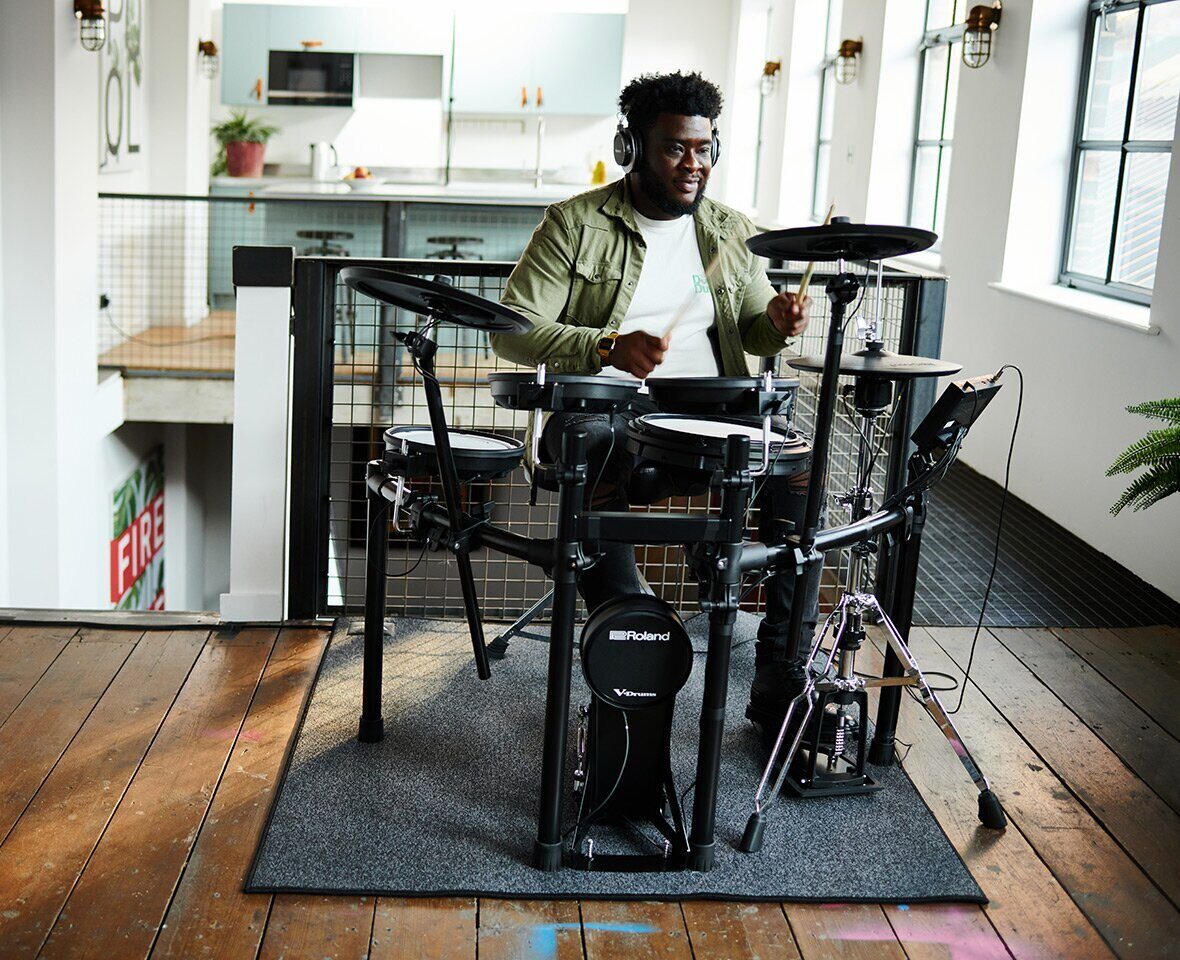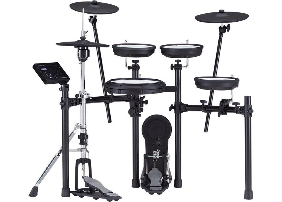 В далеком 1997 году компания Roland "взорвала" рынок цифровых ударных, представив первые в мире сетчатые пэды. Уникальная двухслойная сетчатая конструкция обеспечивает аутентичные отдачу и отскок как при игре на акустических ударных, кроме того, можно даже с помощью обыкновенного барабанного ключа откорректировать силу натяжения мембраны. Подобное доступно только при использовании сетчатых мембран компании Roland. Но сетчатые мембраны не единственный подобный "революционный" компонент, добавьте к этому еще и хай-хэт VH-10, тарелки CY-12C крэш и CY-13R райд, которые при игре раскачиваются как акустические.