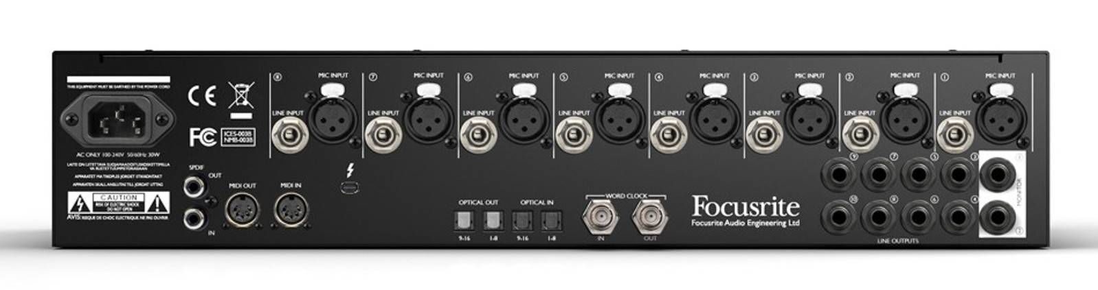 Необходимо отметить впечатляющие коммутационные возможности флагмана Clarett 8PreX. Он имеет всего 26 входов и 28 выходов. Оснащен 8 микрофонными/линейными входами на разъемах XLR и TRS, 2 восьмиканальнымицифровыми интерфейсами стандарта ADAT, двухканальным цифровым входом и выходом S/PDIF, 10 аналоговыми линейными выходами TRS, 2 стерео выходами на наушники, а также входом/выходом синхронизации Word Clock.