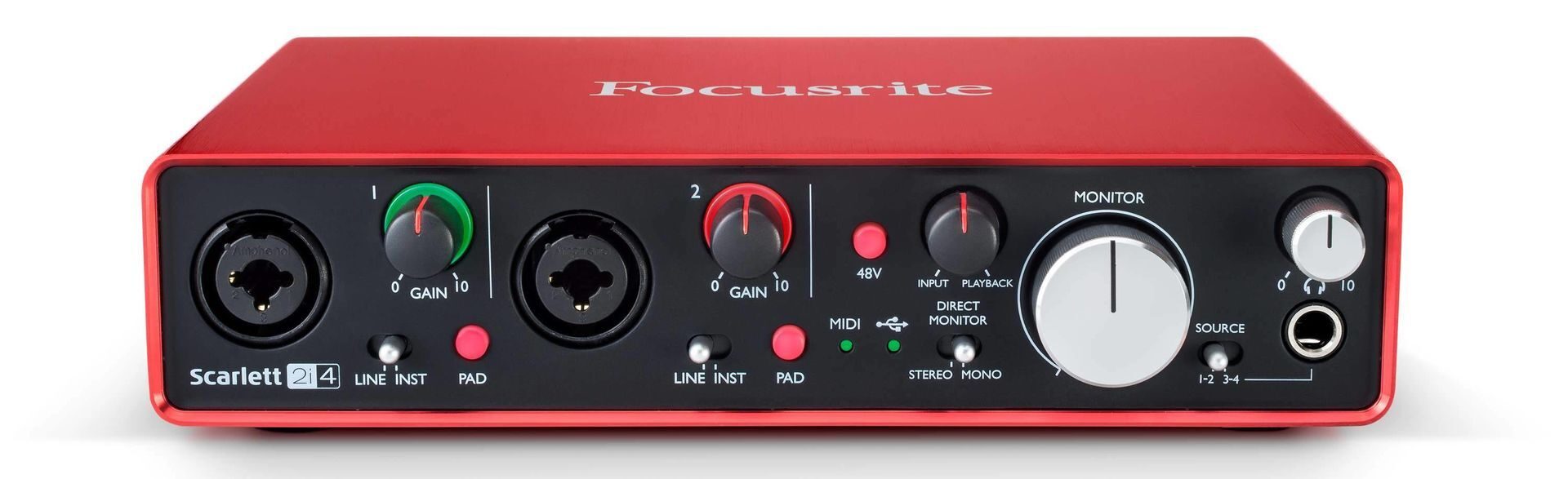 - Два естественно звучащих микрофонных предусилителя Scarlett с большим кол-вом регулировок