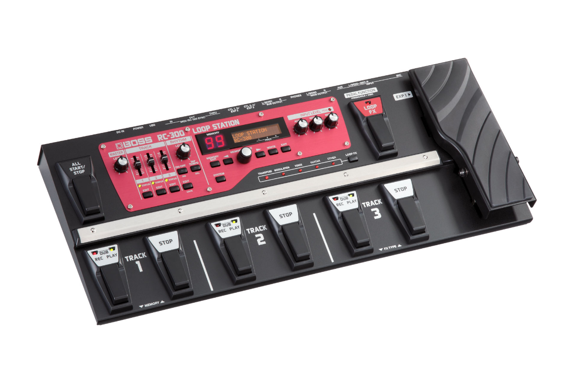 Многофункциональный педалборд RC-300 содержит педаль экспрессии (с возможностью назначения на нее множества функций) и переключатели для независимого управления транспортом (записью и воспроизведением) для каждого трэка. Также три независимых фэйдера дают возможность установить громкость каждого трэка. Этого мало? Можно подсоединить дополнительные педали управления или экспрессии (приобретенные отдельно).