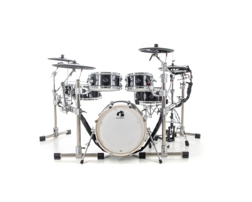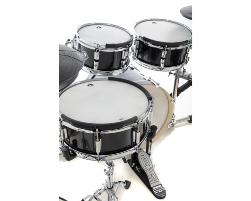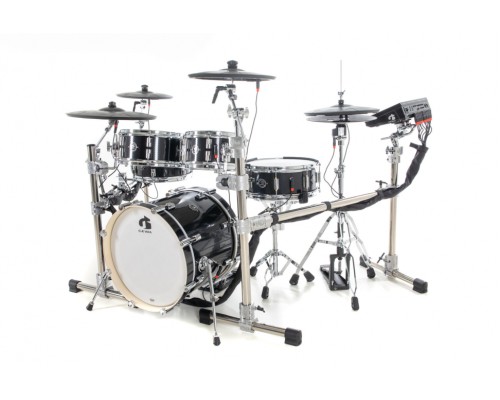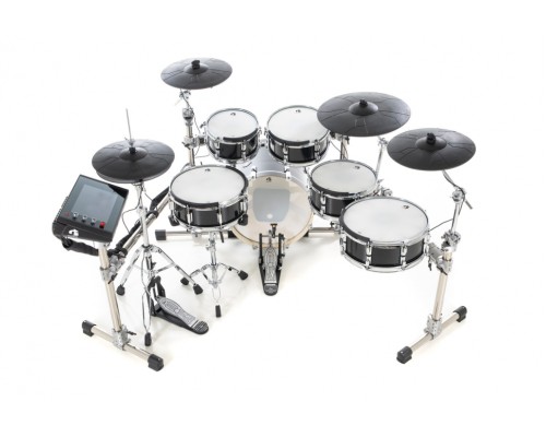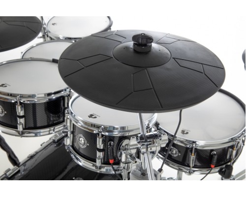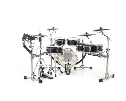 Электронная ударная установка из шести барабанов, изготовленых по гибридной технологии, создающей полное ощущение от игры на акустических ударных. Вместо резиновых пэдов здесь настоящие неглубокие акустические барабаны с ободами, лагами, натяжными винтами, как на акустических барабанах. Пластики для барабанов на основе двухслойной кевларовой сетки разработаны совместно с американским лидером в этой области – Remo, и обеспечивают максимально реалистичные ощущения отклика, как у живых акустических барабанов. Отделка барабанов – карбоновое волокно. Специальные пэды создают реалистичный отклик тарелок Paiste серии 2002, соответствуя им по параметрам и массе.