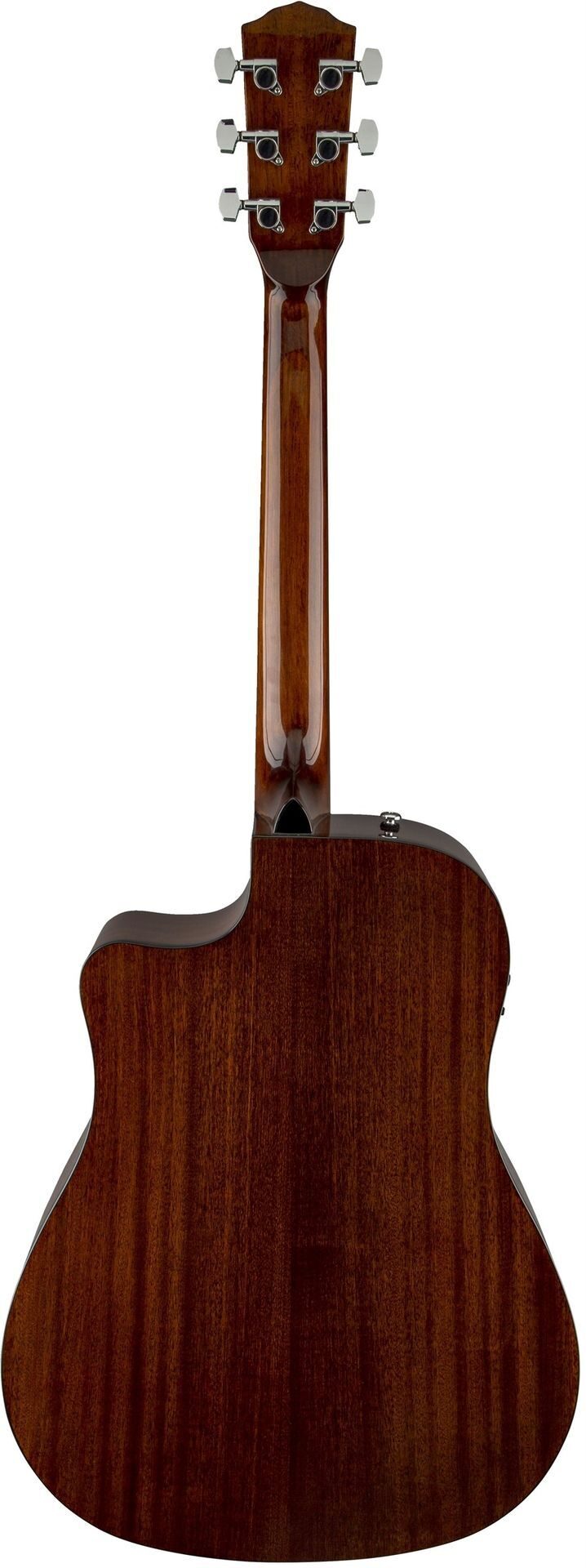 FENDER CD-60SCE NAT – модель 2017 года, электроакустическая гитара в корпусе дредноут от знаменитого американского производителя, оснащённая высококачественной электроникой. Это идеальный инструмент начального/среднего уровня для молодых музыкантов и обучающихся игре на гитаре, готовых попробовать себя в электричестве. Венецианский вырез с плавным изгибом даёт удобный доступ к верхним ладам. Материал и конструкция гитары позволяют использовать её для самостоятельных занятий, обучения и репетиций, камерных выступлений для небольшого круга слушателей: дома, на открытом воздухе или в кафе. Верхняя дека CD-60SCE - из цельной древесины ели, это придаёт инструменту прекрасные акустические характеристики при любом стиле игры. Нижняя дека и обечайка сделаны из красного дерева, что позволило не только получить эффектный внешний вид, но и добиться сбалансированного звучания и впечатляющей громкости. Гриф профиля Fender® 'Easy-to-Play' также выполнен из красного дерева, с однослойной черной окантовкой. Удобная форма грифа придётся по душе как начинающим гитаристам, так и опытным профессиональным музыкантам. Накладка – палисандровая, радиуса 12 дюймов (305 миллиметров), инкрустирована перламутровыми точками диаметром 3 миллиметра. На грифе 20 ладов Vintage. Пьезозвукосниматель Fishman с предусилителем и встроенным тюнером оснащён удобными регуляторами для настройки, при этом сохраняется чистый, густой и насыщенный звук с прекрасным резонансом. Бридж выполнен из палисандра, фурнитура – хромированная. Гитара элегантно выглядит в классическом натуральном цвете дерева с глянцевой отделкой корпуса и грифа, контрастным черным пикгардом. Розетка красиво оформлена перламутром. На инструменте установлены струны Fender® Dura-Tone® Coated 80/20 Bronze толщиной .012-.052.