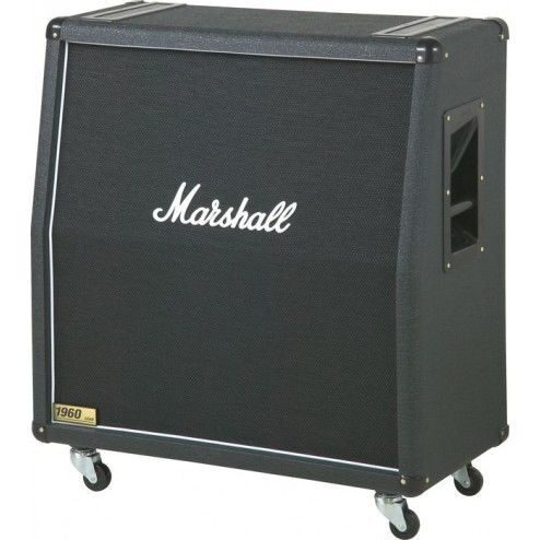 Конструкция гитарного кабинета была специально спроектирована, для того чтобы обеспечить максимально сбалансированное воспроизведение середин и мощные низа. Скошенный на половину, верхний угол конструкции кабинета, формирует более агрессивный, жесткий звук. Акустический дизайн был оптимизирован инженерами специально под громкоговорители Celestion G12T-75. Корпус покрыт сверху материалом черного цвета, а по углам конструкции предусмотрены накладные уголки-защиты, закрепленные винтами, которые предохраняют покрытие от обдирания и придают дополнительную прочность. Динамики Селекшен 4 х 12’’ закрыты снаружи специальной клетчатой тканью, которая защищает от механических повреждений и пыли. Ткань была разработана таким образом, что во время работы динамиков, свободно пропускает звуковые волны без помех и без частичного поглощения звука. Клетчатая тканевая защита имеет белую окантовку и по центру логотип MARSHALL в белом исполнении, который присущ для всех гитарных и акустических кабинетов этой компании. На нижней стороне корпуса предусмотрены ножки-ролики, а по боковым сторонам конструкции находятся ручки-чаши, утопленные внутрь, для возможности удобной транспортировки. При сборке модели используются провода и кабели профессионального уровня и высокого качества.