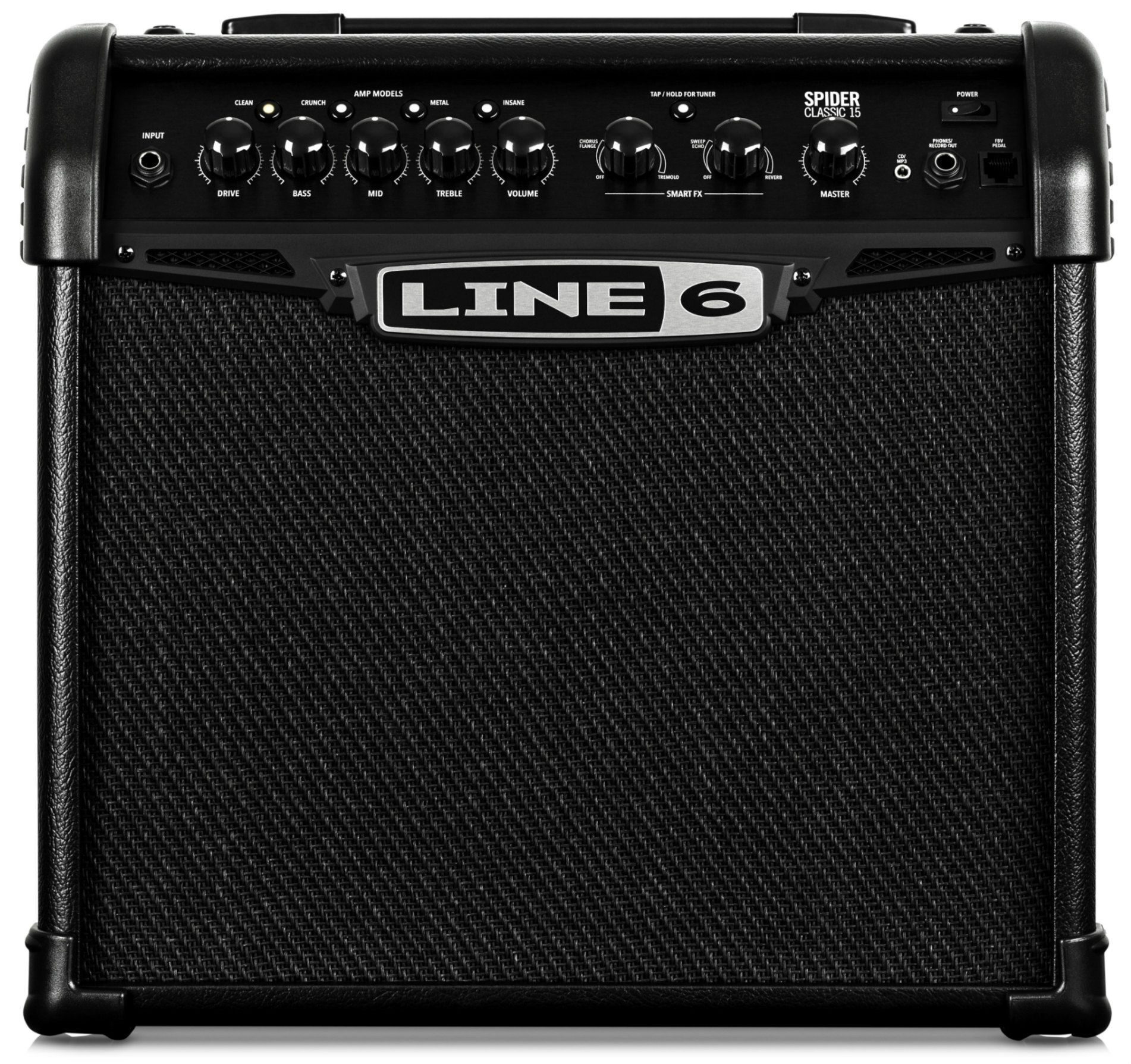 LINE 6 Spider V 15 Classic – современный моделирующий гитарный комбоусилитель, предоставляющий широкие возможности настройки звучания. Эта модель была разработана на основе предшественницы – популярного усилителя Spider® IV 15. Spider V 15 Classic позволяет выбрать нужное звучание из коллекции различных моделей усилителей, которые можно видоизменять, создавая собственные уникальные комбинации, и применять разнообразные эффекты, включая реверберацию, хорус, эхо, тремоло и другие. Как и все усилители линейки Spider V, модель отличается эргономичным дизайном и удобством в использовании. Элементы управления размещены на передней панели. Регуляторы Bass, Mid и Treble выступают в роли трёхполосного эквалайзера моделируемого усилителя. 6 Spider V 15 Classic имеет мощность 15 Вт и оснащен высококачественным 8-дюймовым динамиком, который выдаёт звук потрясающей глубины, чистоты и чёткости. Сзади корпус усилителя закрыт на 3/4. Модель оборудована встроенным тюнером и полностью совместима с ножными контроллерами FBV™ Express MkII и FBV2, что будет особенно удобно для живых выступлений.