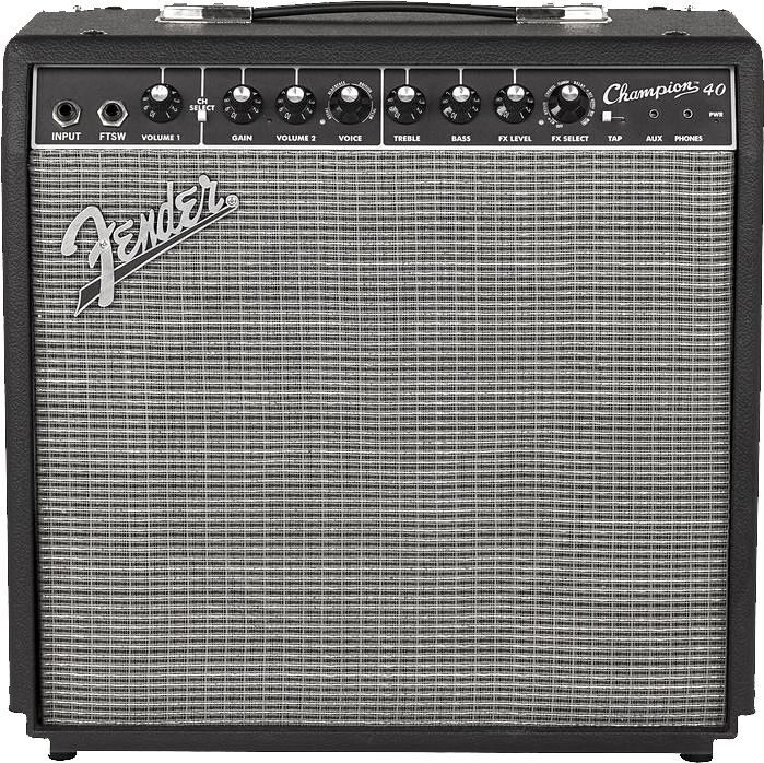 Модель комбо-усилителя Fender Champion 40 выполнена в классическом стиле, имеет два канала и предназначена для репетиций и небольших клубных концертов. Первый канал выдает свое классическое «фендеровское» звучание на основе таких усилителей, как Twin Reverb. Второй канал имеет возможность выбора озвучивания усилителя.
