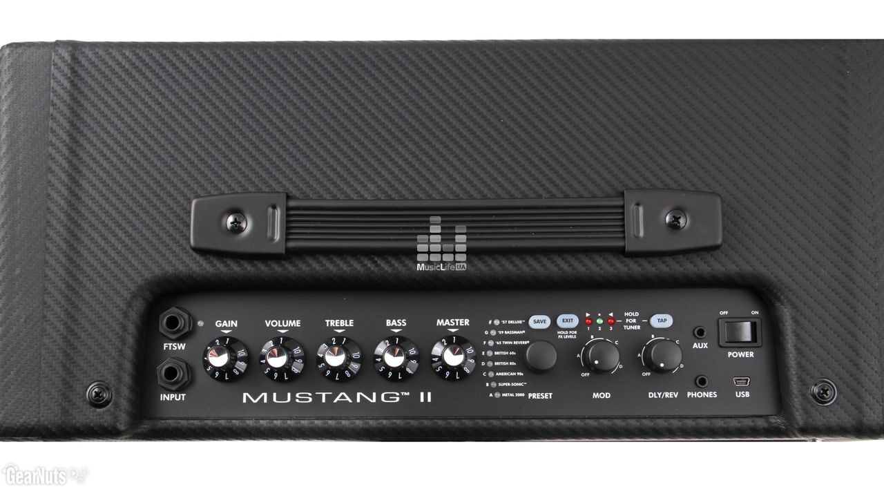 FENDER MUSTANG II (V2) бесспорно оценят как профессиональные так и начинающие гитаристы, так как комбо сочетает практически все классические и современные характеристики звучания. Комбо имеет классическое внешнее оформление в стиле классических гитарных усилителей  Fender. Данный моделирующий комбо имеет мощность в 40 Ватт, оборудован секцией эффектов, включающей в себя порядка 100 пресетов. В пресеты эффектов входят 12 из самых популярных моделей гитарных усилителей, а так же семь типов самых популярных педалей перегруза (overdrivedistortion) и большое количество эффектов. Этот комбоусилитель никогда не заставить Вас скучать!
