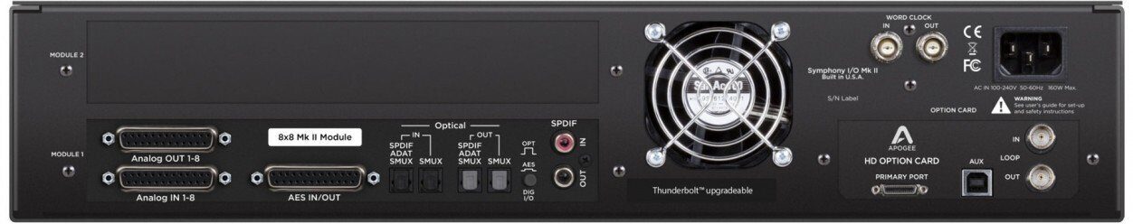 Apogee Symphony MKII SYM2-8X8S2 (8x8 Analog, 8x8 AES/ADAT, 2x2 SPDIF) интерфейс Thunderbolt 32-канальный. Возможна установка дополнительного модуля входов/выходов.