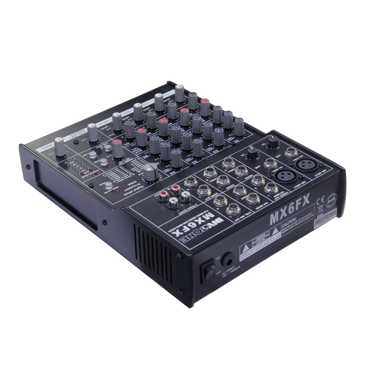INVOTONE MX6FX - микшерный пульт 2 микрофонных входа XLR и балансный Jack, 2 стерео входа