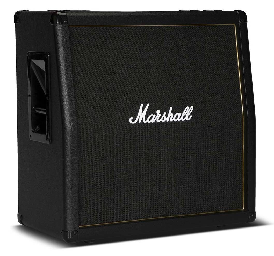 MARSHALL MG412AG – гитарный кабинет стильного современного дизайна с великолепным звучанием из обновлённой линейки Gold от знаменитого британского производителя. Модель идеально подходит для использования совместно с усилителем типа голова MG100HGFX. Корпус кабинета – со скосом в верхней части. Мощность модели – 120 Ватт. Внутри расположены четыре высококачественных излучателя Celestion G12-412MG диаметром 12 дюймов и мощностью 30 Ватт каждый. Кабинет MG412AG заключен в прочный корпус с эффектной золотой передней панелью и решеткой с крупным контрастным логотипом Marshall. Для транспортировки по бокам предусмотрены надежные утопленные ручки. Углы кабинета защищены блестящими черными накладками.