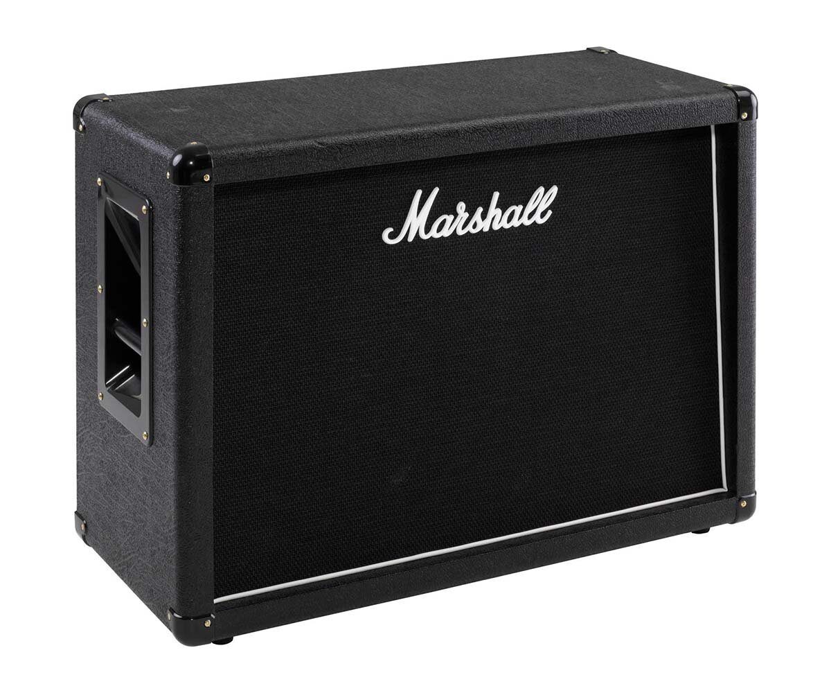 MARSHALL MX212 2X12 – гитарный кабинет от знаменитого, не нуждающегося в представлении британского бренда, который идеально сочетается практически с любыми усилителями Marshall, может использоваться как дополнительный кабинет или в сочетании с комбоусилителем. Как и вся продукция компании, MX212 отличается высочайшим качеством электронных компонентов, комплектующих и сборки. Модель оснащена двумя динамиками Celestion Seventy 80 (80 Вт, сопротивление 16 Ом), которые выдают достаточно мощности, чтобы получить легендарное маршалловское роковое звучание. Эти великолепные динамики обладают мощными, плотными низкими частотами и резкой четкой серединой. Общая мощность кабинета – 160 Ватт. Корпус выполнен из прочного МДФ. Габариты: 535 мм х 310 мм х 760 мм. Вес – 23,2 кг. Дизайн MX212 – классический, строгий. Модель прямой конструкции, представлена в черном цвете с текстурным покрытием, черной решеткой с контрастной белой окантовкой и белым логотипом Marshall. Углы кабинета защищены накладками, также черными.