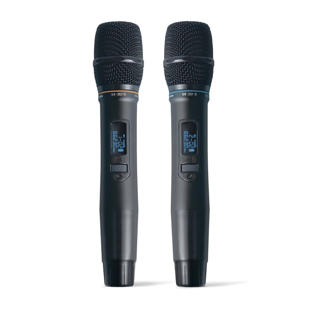 В вашем EVOBOX Plus уже встроен ресивер для приема сигнала от беспроводных микрофонов SE • 201D, осталось только подключить караоке-систему к ТВ, акустике и начать петь.
