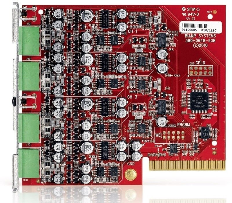 Карта аналоговых входов для установки в Tesira SERVER и SERVER-IO. Данная карта имеет 4 микрофонных/линейных входа. Входы симметричные и реализованы на клеммных разъемах. ПО Tesira позволяет управлять уровнем сигнала на входе с индикацией перегрузки, включать фантомное питание +48 В, регулировать уровень цифрового усиления сигнала, инвертировать и заглушать сигнал.