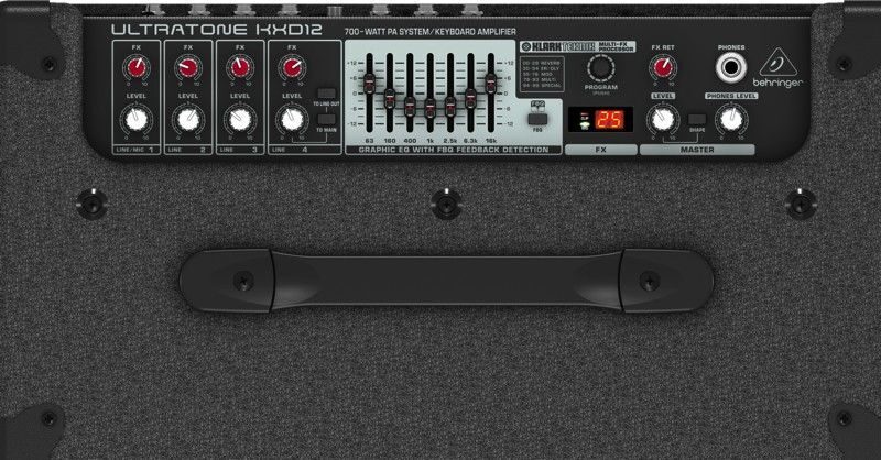 Удивительно мощный ULTRATONE KXD12 характеризуется как универсальный клавишный и барабанный усилитель, а также как высококачественная 4-канальная ПА система с мирового класса 12" TURBOSOUND динамиком в компактном и легким в транспортировке корпусе. Специализируясь на богатом, точном тоне и на профессиональных характеристиках, таких как KLARK TEKNIK Multi-FX процессор, bi-amp усилитель и система обнаружения обратной связи FBQ, этот 700 Вт комбо передаст все самое лучшее от вашего инструмента и вокала. Заметьте, многие конкуренты используют простые пассивные кроссоверы, которые не только неточно разделяют частотный спектр, но и значительно воздействуют на производительность динамиков. В этом BEHRINGER шагнул намного вперед, оборудовав каждый вуфер и твитер отдельным усилителем для абсолютной целостности сигнала.