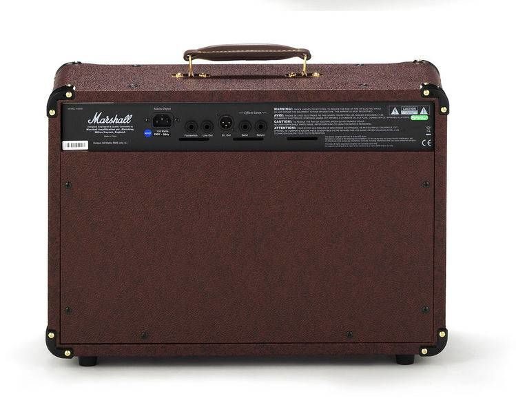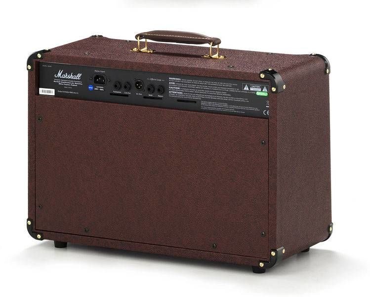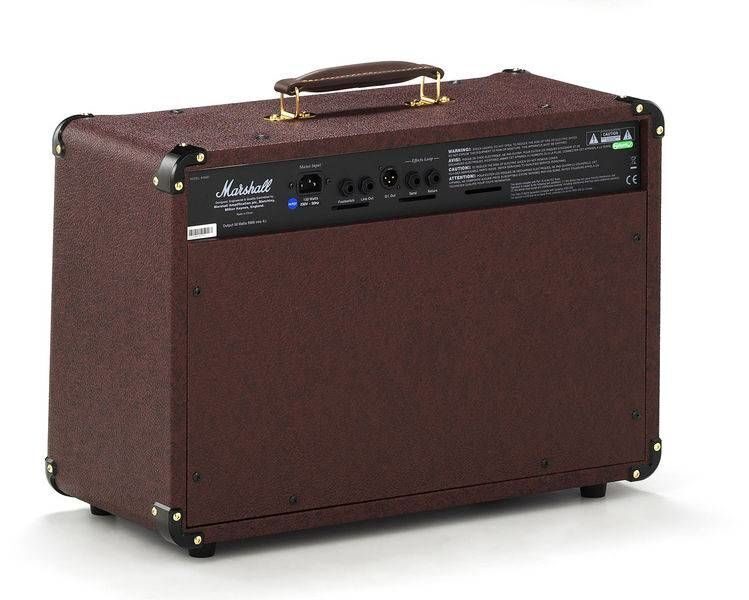 Комбоусилитель оборудован двумя динамиками. Есть секция эффектов Chorus(а) и Reverb, которые в стереорежиме значительно обогащают звучание этого усилителя. Для коммутации комбоусилитель предлагает микрофонный (XLR) и инструментальный каналы (1/4 Jack x 2), имеющие независимые органы управления, среди которых регуляторы тембра, настройка эффектов, схема подавления обратной (Anti-Feedback) и секция эффектов студийного качества (Chorus/Reverb). Для каждого из каналов доступна отдельная секция эффектов. Акустический комбо предлагает прекрасное звучание и дизайн от одного из лучших производителей гитарного оборудования, компании Marshall.