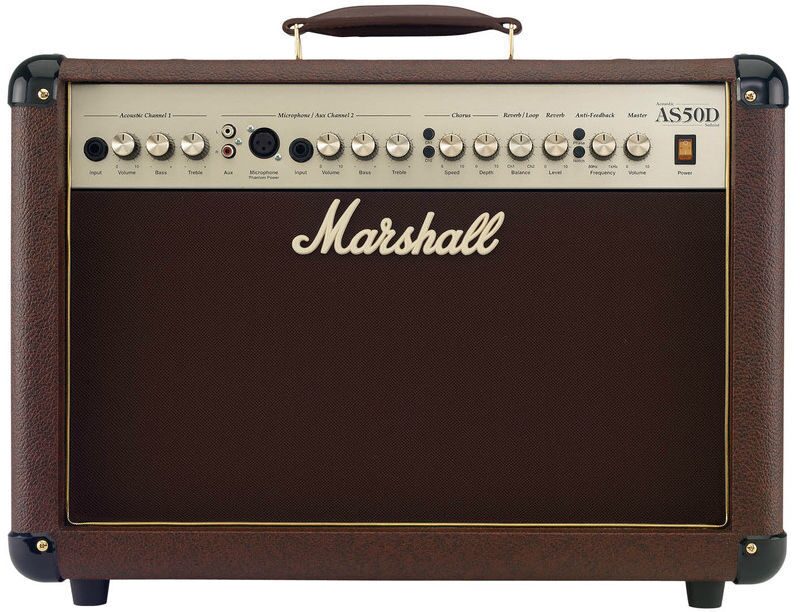 MARSHALL AS50D 50W ACOUSTIC SOLOIST COMBO представляет собой комбоусилитель для электроакустической гитары. Комбо является идеальным выбором для практикующих музыкантов и гитаристов. Схема электроники и гитарные динамики (2 х 8 дюймов) комбоусилителя были специально разработаны для того, чтобы передать качественное звучание электроакустической гитары и вокала. Двухканальный комбоусилитель имеет мощность в 50 Ватт, которых достаточно для озвучивания репетиционной комнаты, небольшой сцены или небольшого клуба.