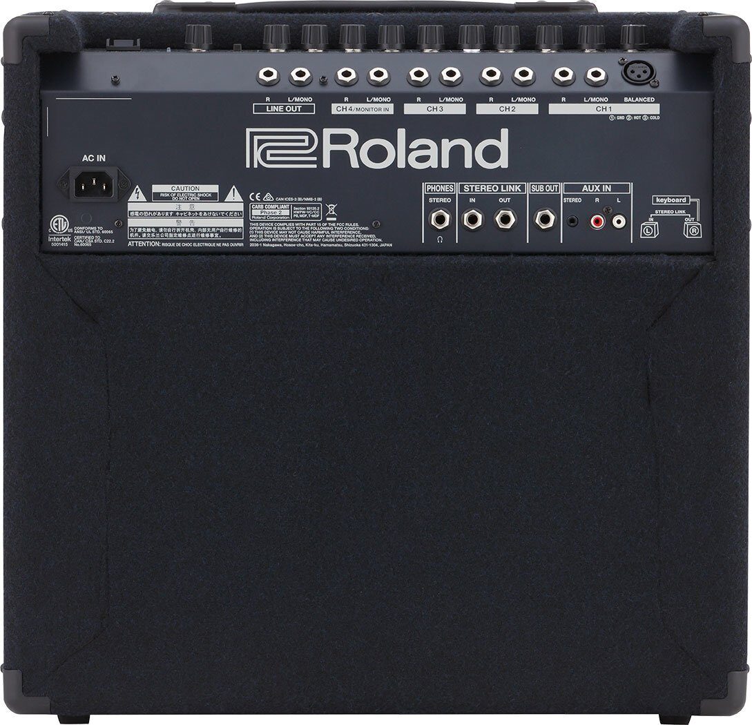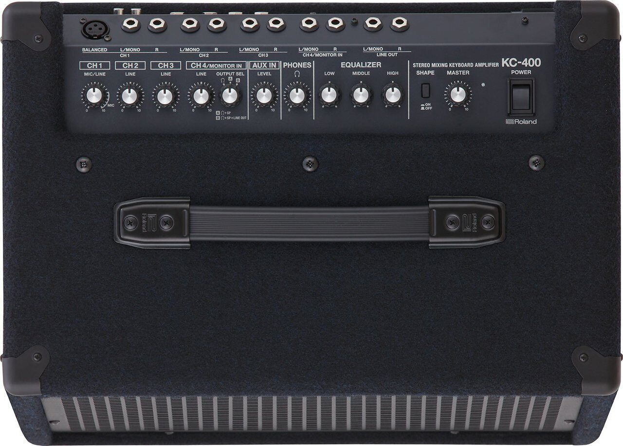 KC-400 — компактный комбо с плотным, пробивным полнодиапазонным звуком мощностью 150 ватт. Двойная фазоинвертерная конструкция кабинета, запатентованная компанией Roland, позволяет расширить диапазон воспроизводящихся без искажения низких частот. Модернизированная секция усиления КС-400 обеспечивает более качественное воспроизведение низов, что позволяет добиваться превосходного звучания при усилении сигналов 88-клавишных сценических пианино, органов, синтезаторов, драм-машин и других электронных инструментов. Еще одним дивидендом эффективной конструкции секции усиления стало снижение веса, облегчающее транспортировку КС-400.