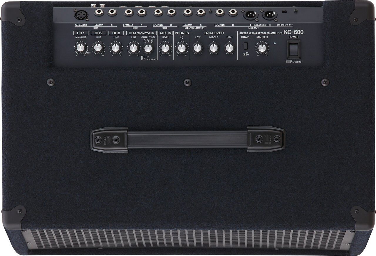 KC-600 — компактный комбо с плотным, пробивным полнодиапазонным звуком мощностью 200 ватт. Двойная фазоинвертерная конструкция кабинета, запатентованная компанией Roland, позволяет расширить диапазон воспроизводящихся без искажения низких частот. Модернизированная секция усиления КС-600 обеспечивает более качественное воспроизведение низов, что позволяет добиваться превосходного звучания при усилении сигналов 88-клавишных сценических пианино, органов, синтезаторов, драм-машин и других электронных инструментов. Еще одним дивидендом эффективной конструкции секции усиления стало снижение веса, облегчающее транспортировку КС-600.