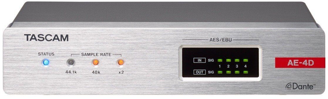Tascam выпустили компактный 4-х канальный Dante преобразователь, который оснащен встроенным DSP-микшером. Устройство может использоваться для концертов, в вещательных и звукозаписывающих студиях, а также для любых задач по взаимному преобразованию сигналов Dante/AES/EBU.