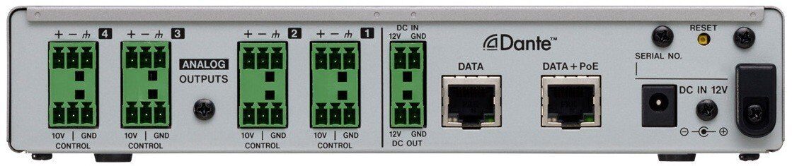 Tascam ML-4D/OUT-E не только преобразует сигналы Dante в 4-канальные линейные сигналы; он также может преобразовывать их в 4-канальные выходные сигналы Dante, что позволяет направлять их в установленную Dante сеть с помощью встроенного матричного микшера DSP.