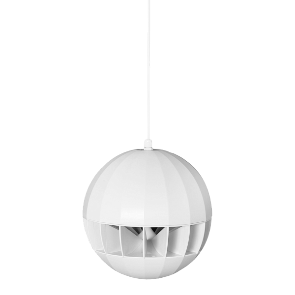 ASP20 – подвесная акустическая система мощностью 20 Вт в корпусе сферической формы. Оснащена одним широкополосным 8'' динамиком и линейным трансформатором 100 В с отводами мощности на 20, 10, 5 и 2.5 Вт. Круговая диаграмма направленности делает ASP20 идеальным решением для озвучивания больших площадей. Корпус влагоустойчив и имеет защиту от УФ-лучей.