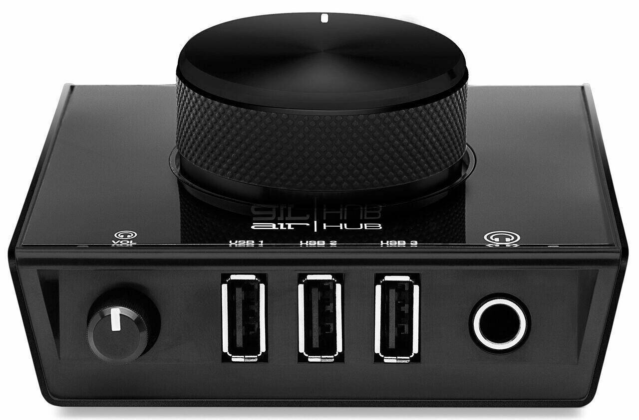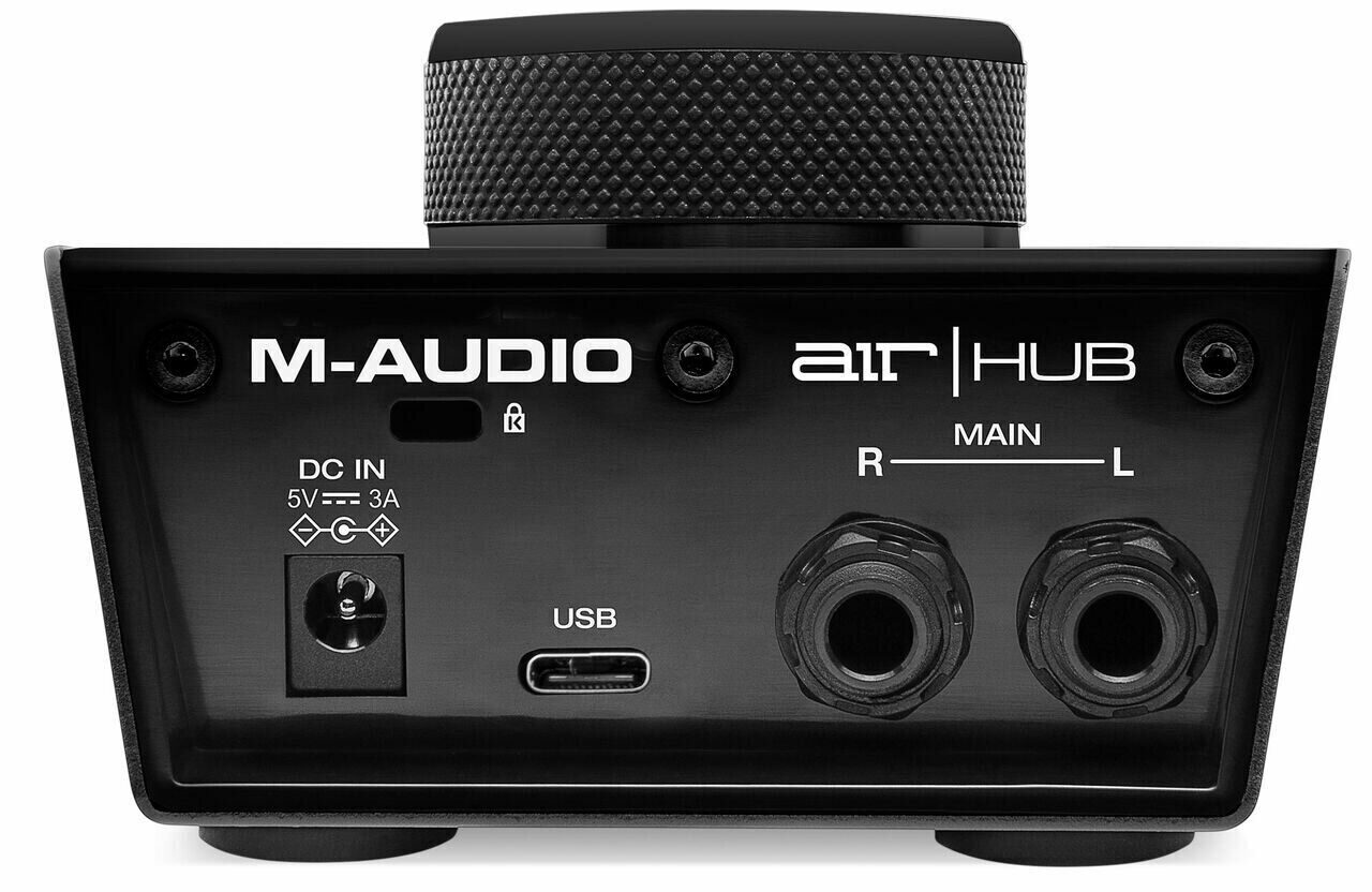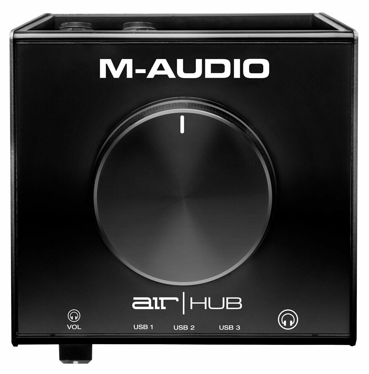 M-Audio AIR | Hub представляет собой высококачественный 3-портовый USB-интерфейс для мониторинга аудио, не имеющий аналоговых входов для записи. Зато он может использоваться в качестве USB-хаба для подключения и питания контроллеров, жёстких дисков и прочих устройств. AIR | Hub размещен в элегантном, цельнометаллическом компактном корпусе, и оснащен двумя балансными 1/4-дюймовыми TRS аудио выходами, тремя USB Hub выходами и 1/4-дюймовым разъемом для наушников с независимым регулятором уровня для приватного прослушивания. Крупный поворотный регулятор громкости позволяет детально и быстро настраивать уровень сигнала.