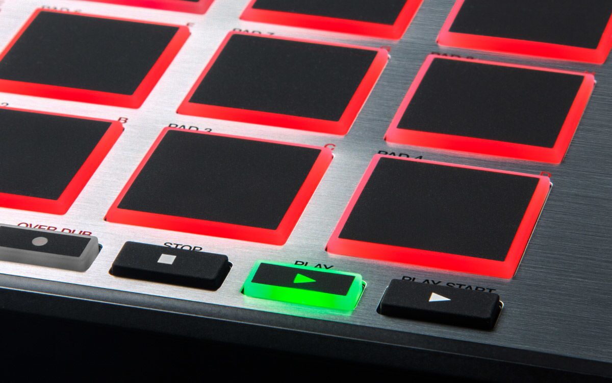 16 пэдов с многоцветной подсветкой, чувствительных к давлению и скорости нажатия