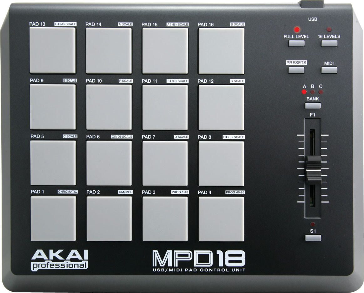 Akai MPD18 – это тот самый ультрапопулярный контроллер, которым пользуются и профессиональные ди-джеи, и любители-энтузиасты. Его основная панель имеет лаконичный набор элементов управления. Главные среди них это, конечно же, пэды МРС, которые считаются эталоном в своей отрасли. Всего их 16. Легкими, мимолетными касаниями музыкант с их помощью сможет извлекать звуки, строить ритмические рисунки и многое другое. Akai MPD18 – это отличный инструмент, который с одинаковым успехом может применяться как для студийной работы, так и для живых выступлений. С компьютером этот контроллер связывается по USB-порту. Он совместим с огромным количеством программ для создания музыки.