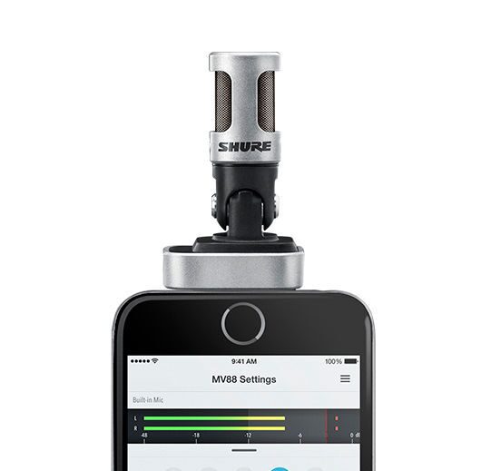 Уже вышел в продажу цифровой конденсаторный стереомикрофон Shure MV88 из новой серии продуктов Motiv. Новинка предназначена для работы исключительно с современными iOS-устройствами, оснащёнными разъёмом Lightning. Изделие реализовано в полностью металлическом корпусе и имеет шарнирное крепление, позволяющее изменять угол наклона микрофона. По словам производителя, модель MV88 идеально подходит для записи видео (например, живых концертов или клипов). Также отмечается, что тщательно подобранные капсюли вкупе с технологией Mid-Side обеспечивают чистый и детальный стереозвук. Для мониторинга записи можно использовать выход для наушников вашего iOS-устройства.