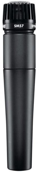 Универсальный динамический микрофон SM 57 стал классикой при работе на самых различных концертных площадках. Постепенный подъем его частотной характеристики на средних частотах способствует чистой и четкой передаче звучания музыкальных инструментов и теплому, богатому воспроизведению вокала. SM 57 незаменим при подзвучке ударных, перкуссии и инструментальных усилителей. Частотный диапазон микрофона составляет 40 Гц — 15 кГц, характеристика направленности — однонаправленная, кардиоидная, сопротивление 150 Ом, уровень выходного сигнала -75,5 дБ. Микрофон отлично подходит для работы с ансамблями, акустическими и электрическими гитарами, банджо, медными и деревянными духовыми, электропиано, электроорганами, эффектом Лесли, рабочим барабаном, томами, тарелками и хай-хэтом.