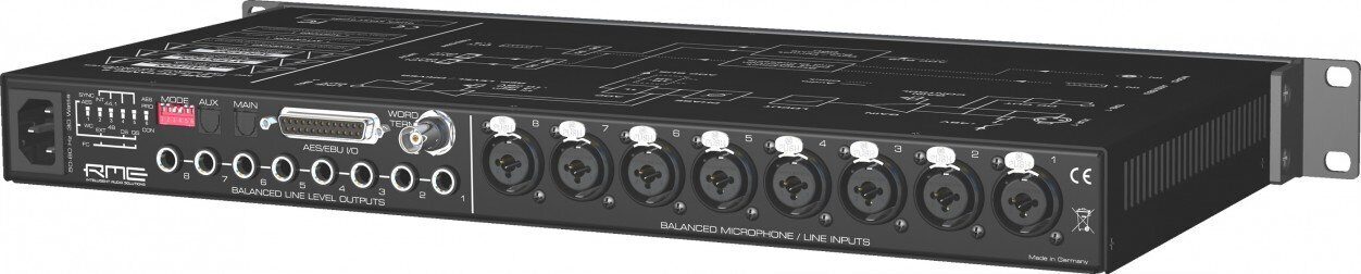 Устройство имеет два оптических цифровых выхода формата ADAT (поддерживают частоты дискретизации до 96 кГц по технологии S/MUX), четыре цифровых электрических стереовыхода и стереовход формата AES/EBU (совместимы с SPDIF, поддерживают частоты дискретизации до 192 кГц, выполнены на 25-контактном разъеме D-Sub, вход используется только для синхронизации), вход Word Clock (BNC), кнопка и светодиодные индикаторы уровня выходного сигнала (-10 дБв, +4 дБ или +19 дБ, переключение осуществляется сразу для всех выходов), кнопка включения режима Clip Hold (при появлении перегрузки соответствующий индикатор начинает мигать) со светодиодным индикатором, блок DIP-переключателей, выключатель и гнездо для кабеля питания.