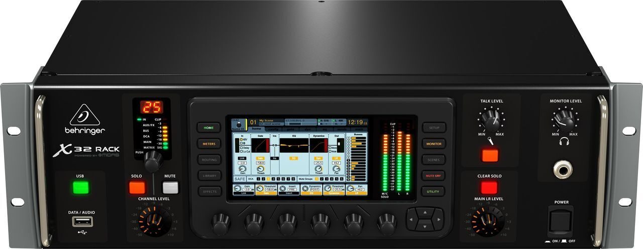 Х32 RACK революционно новый продукт в этом жанре, который объединяет аналоговые входы/выходы и цифровые подключения с достоточной обработкой для 40 каналов, 25 bus и до 152 источников сигналов. Хотя каждый параметр микса можно отрегулировать на Х32 RACK через графический 800 х 480 пользовательский интерфейс, дистанционное сетевое управление создает новые возможности. Несколько приложений XControl PC/Mac, XiControl для iPad/iPad mini и XiQ для iPhone/iPod позволяют управлять миксом именно с того места, которое Вы считаете наиболее подходящим для Вас. 16 MIDAS микрофонных предусилителей предусматривают достаточно входов, а с двойным портом AES50, X32 RACK может поддерживать до 6 ди-боксов S16 для огромного количества входов/выходов. 8 мощных стерео FX процессоров с гибкими опциями делают X32 RACK идеальным выбором для обработки аудио.