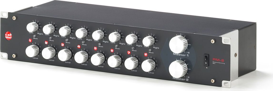 Микшер PM8 это отдельное устройство, предназначенное для пассивного смешивания до 8 каналов аудио-выходов цифровой рабочей станции с получением стерео смешанного сигнала. Для двух из трех независимых стерео выходов имеется внутренний каскад усиления сигнала +24дБ и третий полностью пассивный выход предназначен для пользователей, желающих подключить отдельное устройство для усиления сигнала. При наличии регуляторов панорамы, понижения уровня громкости и функции выключения звука (mute), процесс смешивания сигналов через микшер PM8 позволяет получить не только тот самый желаемый классический звук аналогового пульта, но и свести к минимуму эффекты цифрового смешивания сигналов. Просто лучшее устройство для сочетания цифрового и аналогового оборудования!