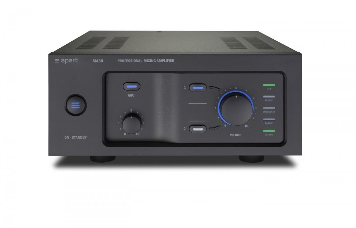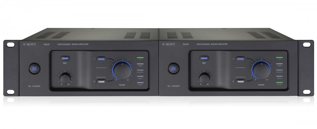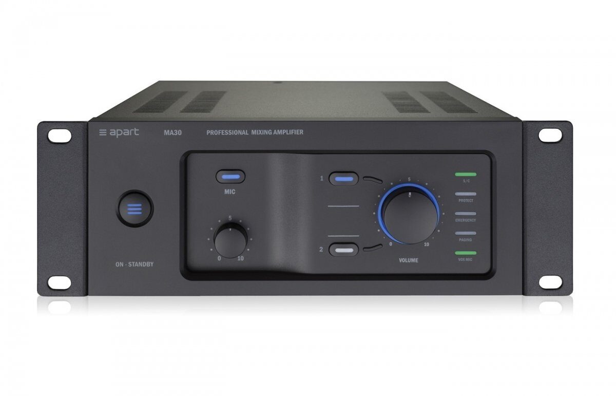 При разработке новой концепции микшера-усилителя один из главных выводов состоял в том, что необходимо оставить в нем только самое необходимое и сделать его удобным в использовании. Ультрасовременный микшер-усилитель Apart MA30 отличается интуитивно понятным набором органов управления на передней панели и необычной, но аккуратной и логичной компоновкой задней панели.