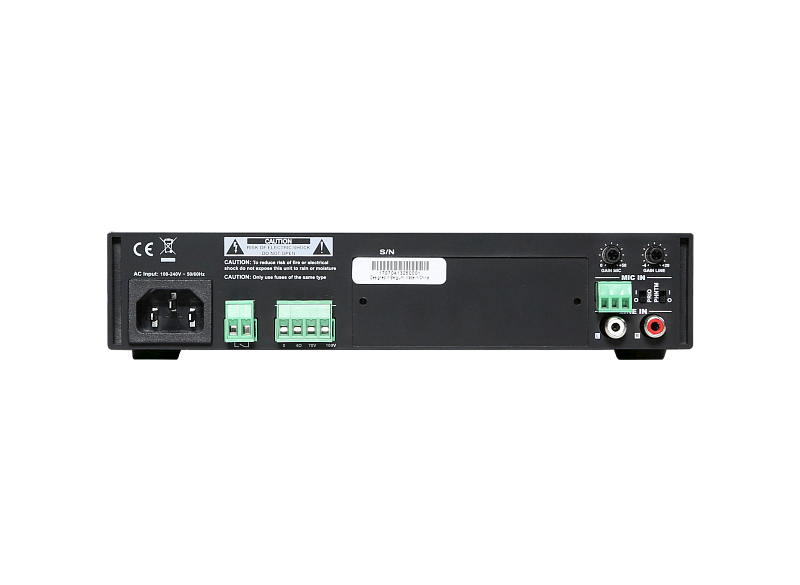 - Компактный усилитель-микшер для систем звукового оповещения для коммерческих инсталляций небольшого и среднего размера