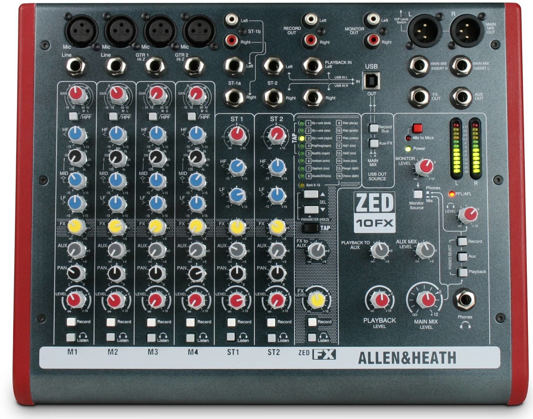 Но, что самое главное, ZED10FX создан согласно высшим стандартам качества аудио и качества сборки, которые делают компанию Allen and Heath одной из самых уважаемых в индустрии звука уже более 40 лет.
