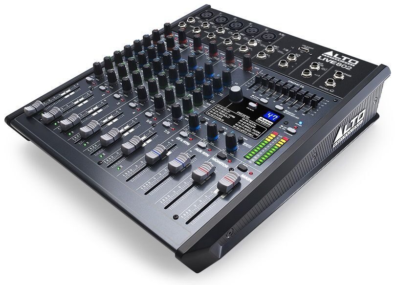 Представляя собой восьмиканальный профессиональный микшерный пульт, Alto LIVE 802 является одной из самых функциональных моделей. Большое количество встроенных эффектов DSP типа и гибкая маршрутизация позволяют его использовать для проведения ряда таких мероприятий, как презентации, конференции и камерные выступления. Данному устройству присущи высококачественная обработка и точное звучание. Все микрофонные каналы оснащены предусилителями малой шумности, что гарантирует по-настоящему уникальное качество сигнала. За собранность и ровность звучания, а также за контроль над динамическим диапазоном отвечают аналоговые компрессоры, встроенные в первые два канала. В арсенале Live 802 – богатейшая палитра из сотни оригинальных эффектов. Для максимальной визуализации услышанного используют светодиодные индикаторы уровня выходного сигнала, фантомного питания и перегрузки.