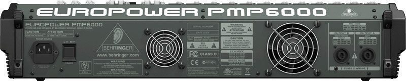 Behringer PMP 6000 EUROPOWER - микшерный пульт со встроенным усилителем мощностью 2х800 Вт ( 1600 Вт в режиме bridge), имеет 12 моновходов, 4 стереовхода, 12 микрофонных предусилителей, мастер-эквалайзер, 2 процессора эффектов и функцию подавления вокала в фонограмме.