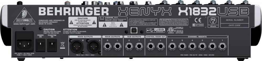 Модель X1832USB имеет 1/4-дюймовые балансные выходы типа Jack и XLR-разъемы с позолоченными контактами. Отдельно были вынесены выходы Control Room, стеревыход для подключения внешнего записывающего устройства и выходы для стереонаушников.