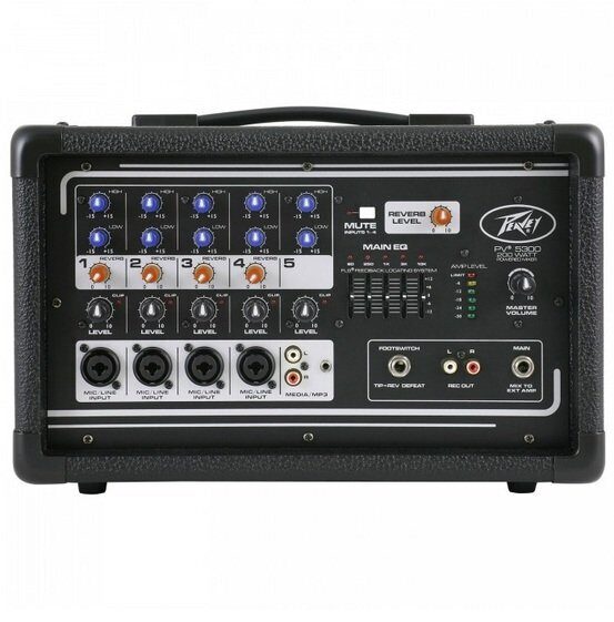 В активном микшере PV 5300 есть всё, что нужно для концертов и студийной работы: вход для внешнего аудио-проигрывателя, 8 балансных XLR-входа Mic/Line (в сумме 18 входов с дополнительной защитой от радиопомех). регуляторы реверберации на каждом входе и на Мастер-секции, 5-полосный графический эквалайзер, а также выходы Line Out для выхода на внешние усилители и Record Out для записи. Мощность секции усиления составляет 150 Вт (RMS) при подключении 2x8 Ом.